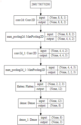model.add(Conv2D(2,(3,3),padding='same',activation='relu',input_shape=(8,8,1)))