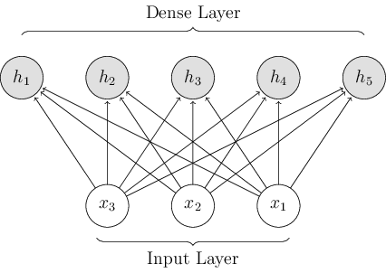 다층 퍼셉트론 신경망에서 사용되는 레이어로 입력과 출력을 모두 연결해준다. 예를 들어, 입력 뉴런이 4개, 출력 뉴런이 8개라고 할때 총 연결선은 4x8=32개가 된다. 각 연결선은 가중치(weight)를 포함하고 있는데 연결강도를 의미한다. 가중치가 높을 수록 해당 입력 뉴런이 출력 뉴런에 미치는 영향이 크고, 낮을수록 미치는 영향이 작다.