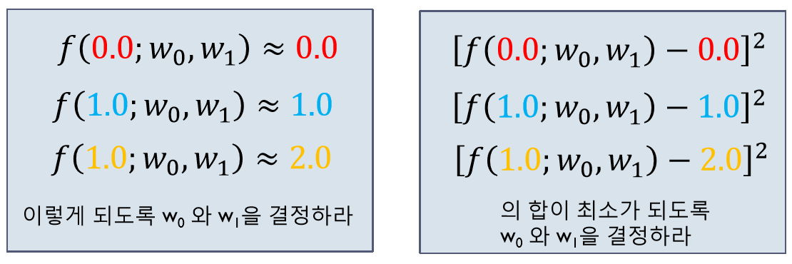 STEP 2 ) f가 주어진 데이터에 가장 잘 부합하도록 w를 잘 조정한다.